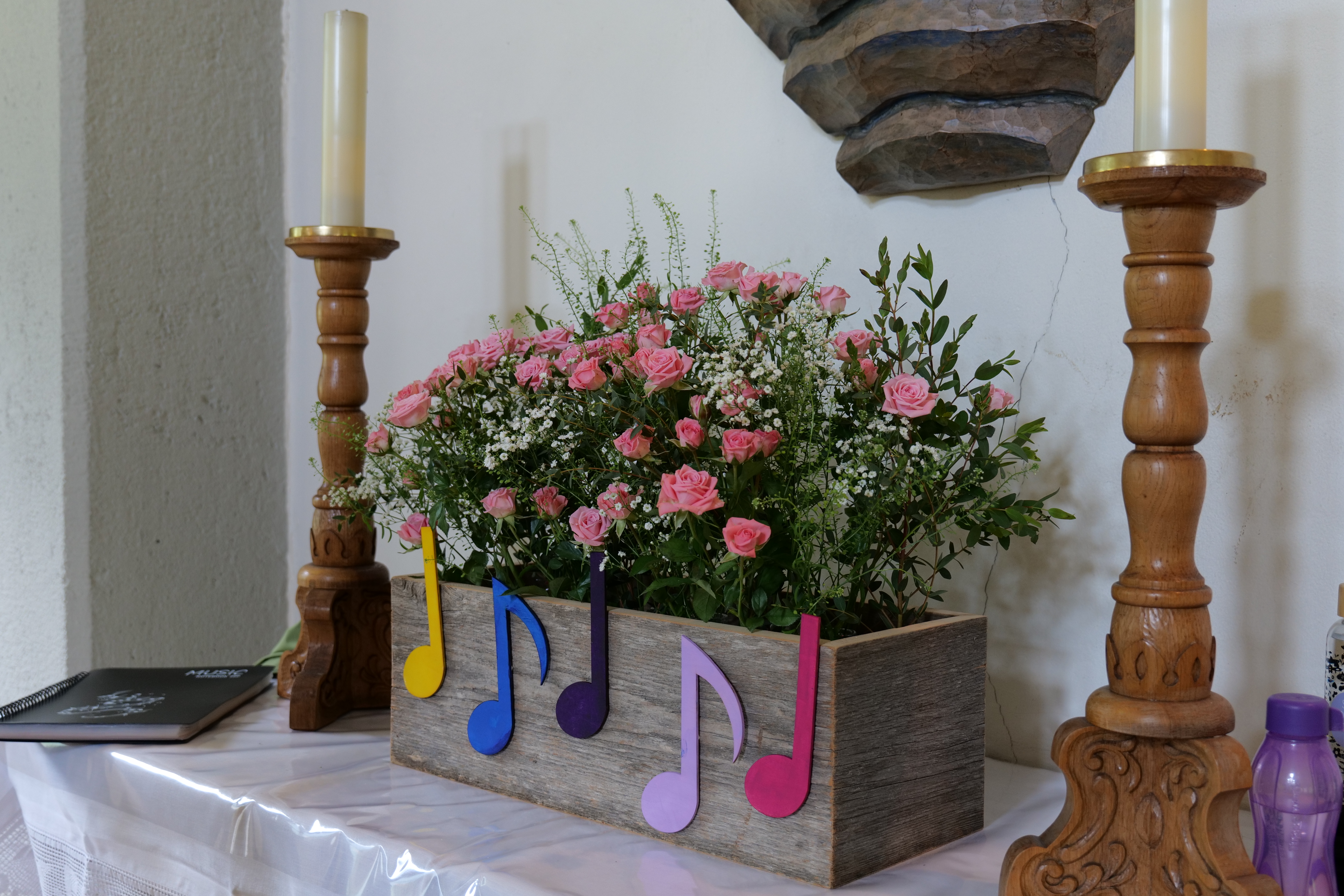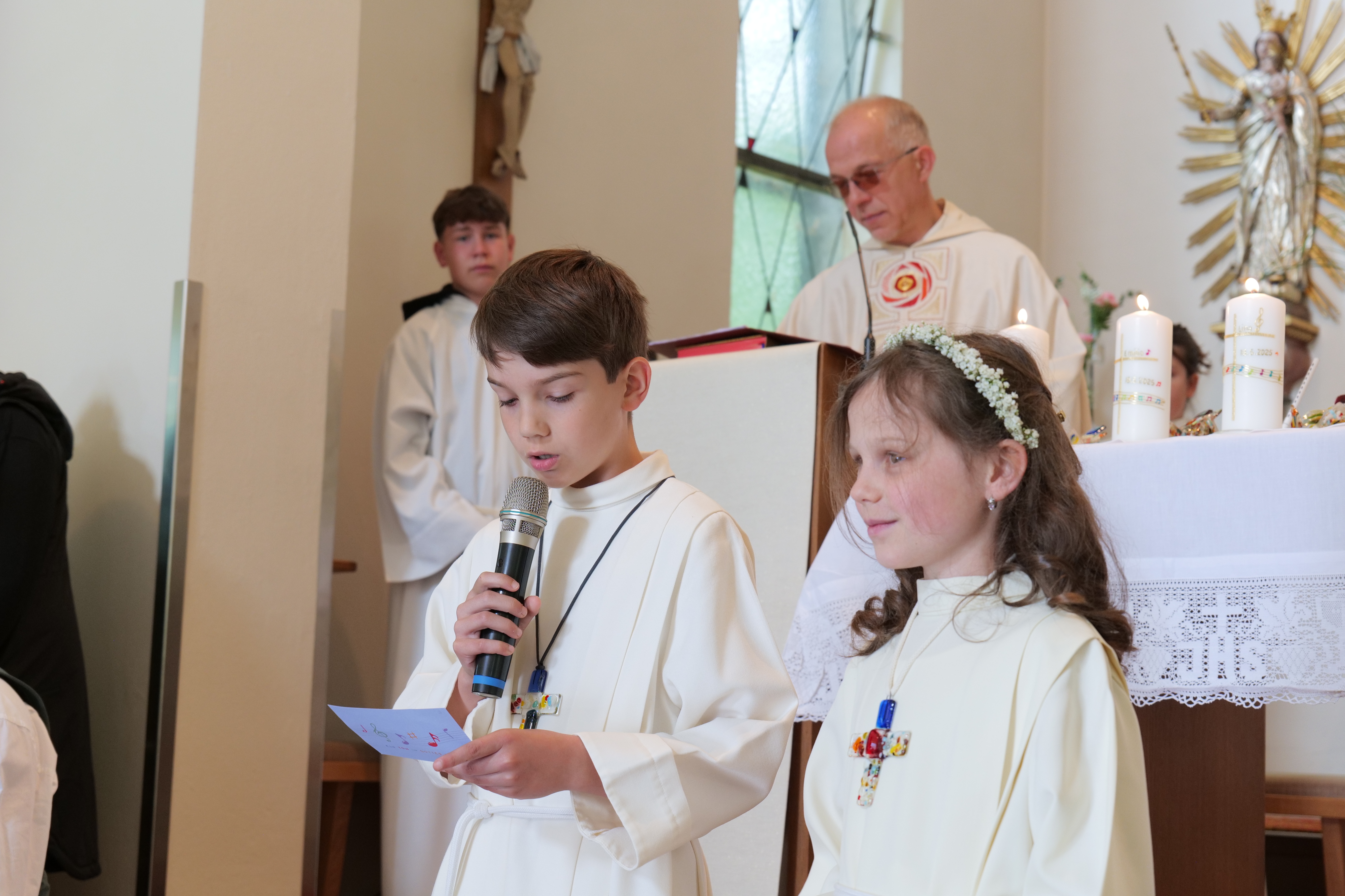Pater Guido feierte mit den Erstkommunionkindern und ihren Familien und Freunden einen besonderen Gottesdienst, der vom Chor Sunshine musikalisch gestaltet wurde.