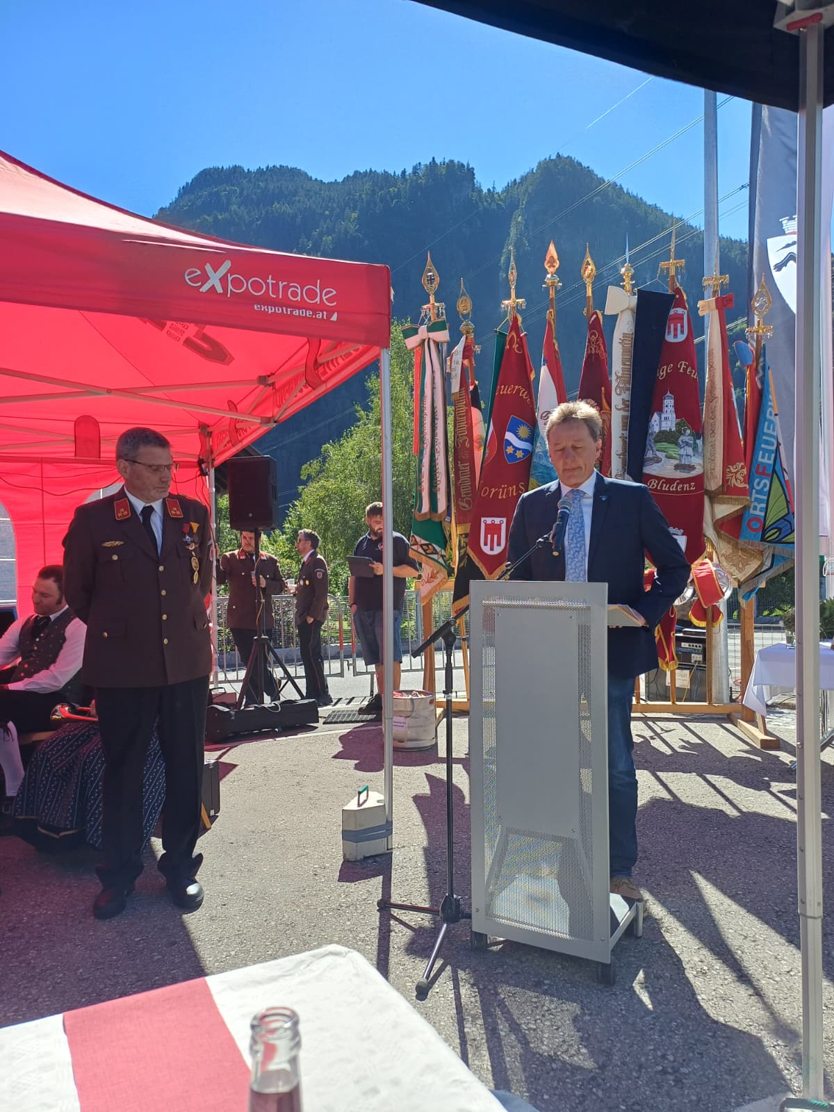 Anschließend wurden bei den Festansprachen allen Beteiligten rund um diesen Neubau gedankt und beim Frühschoppen das gemeinsame Projekt gefeiert.