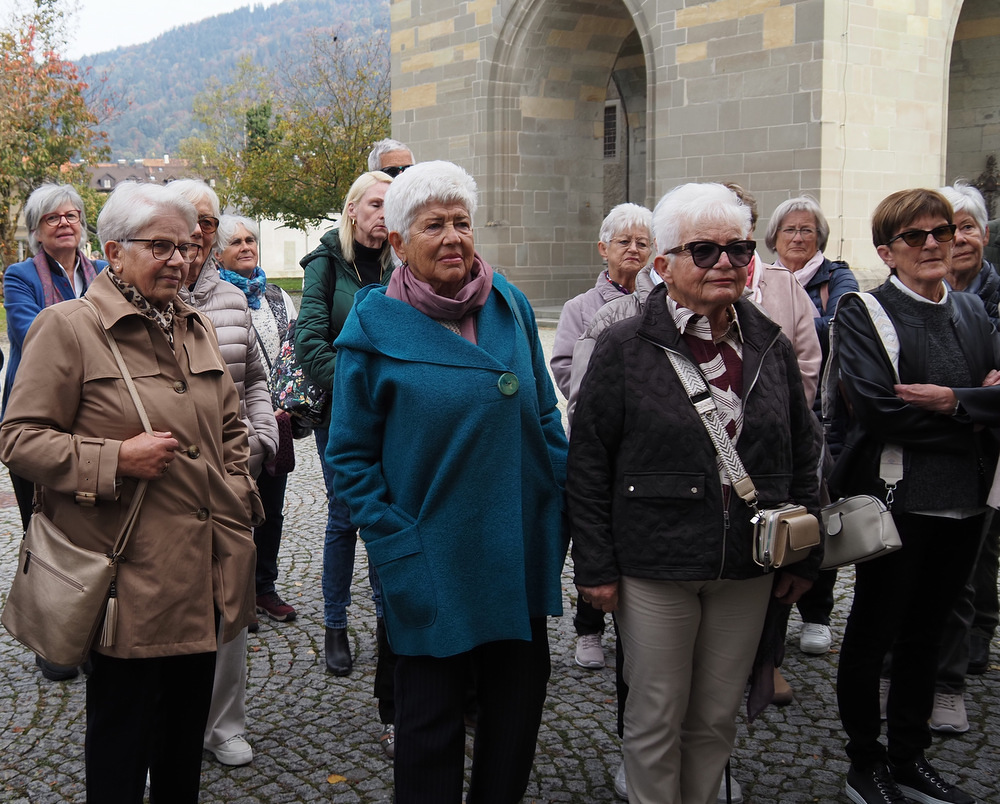 Das Ziel ist die Pfarrkirche St. Gallus in Bregenz. Bereits im Bus begaben sich die Teilnehmenden auf die historische Reise. Nach einer freundlichen Begrüßung wurden die Mitreisenden mit geschichtlichen Verbindungselementen der Pfarren Röthis und Bregenz St. Gallus sowie anderen bedeutsamen Besonderheiten auf das Ausflugsziel vorbereitet.